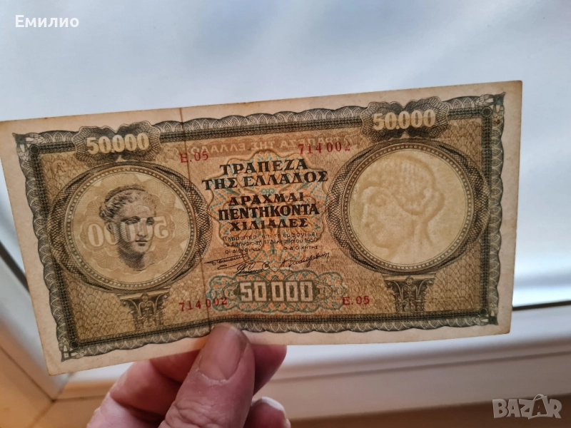 Продавам Рядка Банкнота от Гърция. 50000 Драхми от 1950 год.