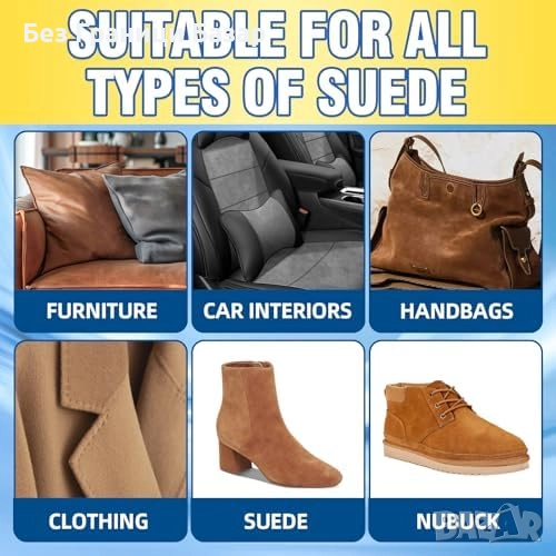 Нова Пяна за почистване и освежаване на велурени и набук обувки, чанти