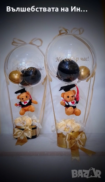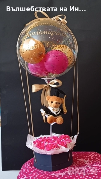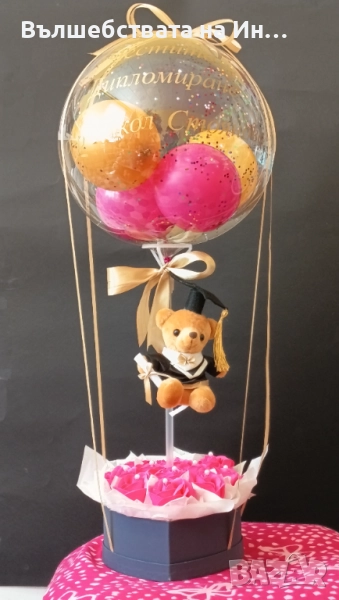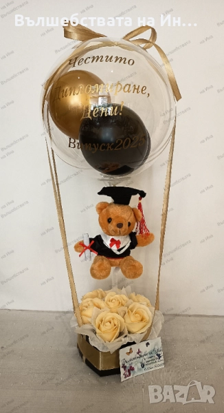 Кутия с декоративни рози, Бобо балон с надпис и мече абсолвент.