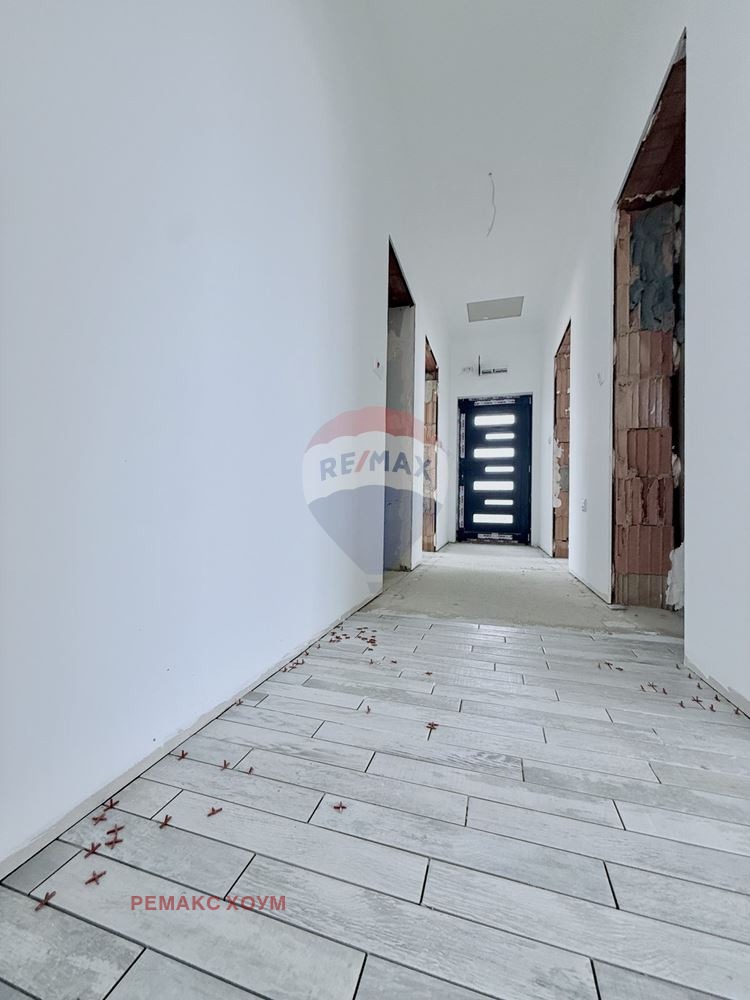 Жилищната сграда е с добра архитектурна визия и съвременен стил. Тухлена е, има външна и вътрешна изолация около 10 см. Основата на самата къща е бетонна плоча. Изложението на имота е югозападно, което го прави много топъл и слънчев. Изграждането на имота е осъществено с използване на висококачествени материали. Монтирана е качествена PVC дограма с двоен стъклопакет на марката KMG четири сезона. Прозорците са от френски тип и са много, което осигурява простор и максимален достъп на истинската светлина във всичките стаи. Покривът е чисто нов, има достъп към междупокривното пространство. Инсталирани са ВиК и Ел. инсталации. Ще има окабеляване за СОТ и интернет. Отоплението/ охлаждането ще бъдат на електричество, с климатици. Имотът е с много добро функционално разпределение. Всички стаи са слънчеви и просторни, без преход. От всекидневната има директен изход към верандата и двора.