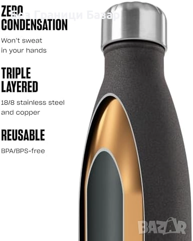 Стилна бутилка 500 мл с трислойна термоизолация за дълготрайно запазване на температурата