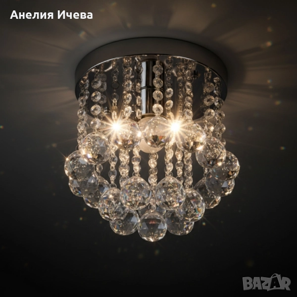 Модерен таванен полилей с кристални сфери → Обява 51938907