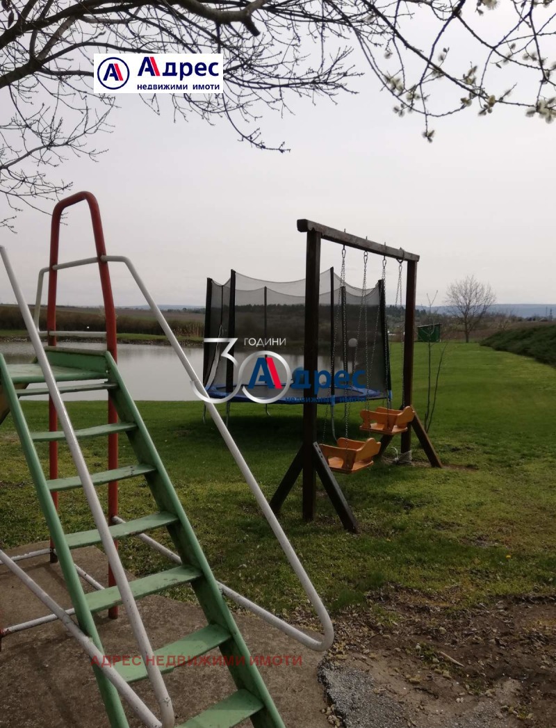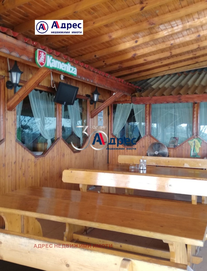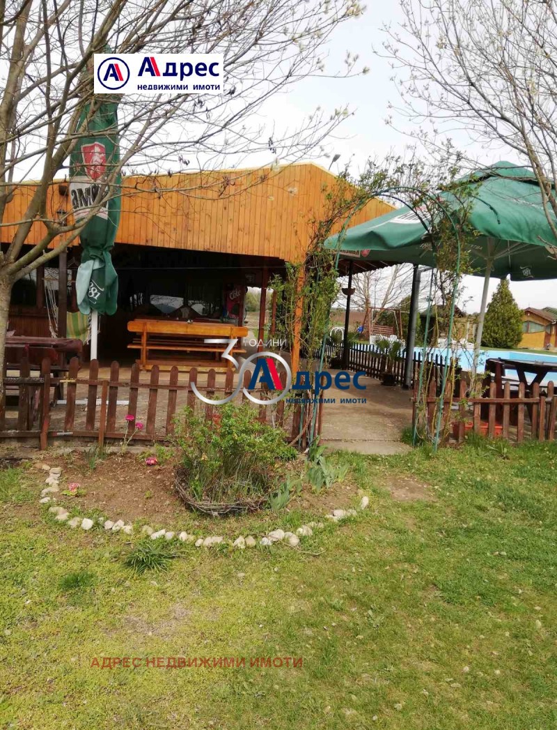 земя. Имотът представлява: Работещ ресторант-напълно оборудван с разрешителни за търговска дейност, със ЗП около 60 м2 и тераса около 40м2., басейн 72 м2, 2000м2 със сменено предназначение и ПУП за построяване на шест къщи за гости, за които има изградена канализация , вода и ток.Има къща в която на първия етаж има стая,кухня и санитарно помещение.На втория има таванска стая, покривът на къщата е сменен. Имотът е със собствен водоизточник с одобрен проект от басейнова дирекция. В имотът има четири рибарника, от които два собствени и два на концесия за 25 години, зарибени с около 4 тона риба, захранвани с изворна вода. Обекта е регистриран в ИАРАК - за спортен риболов. Разполага със собствен трафопост/нов/. Собствена земя 80 000м2, от които 70 000 м2 обработваема земя, 5 000м2 собствена гора с тридесет годишни дървета, около гората в целият имот има 40 бр. плодни дръвчета с различни плодове.