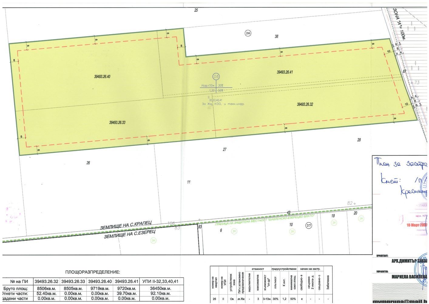 Обща площ на парцела: 36,450 кв.м.