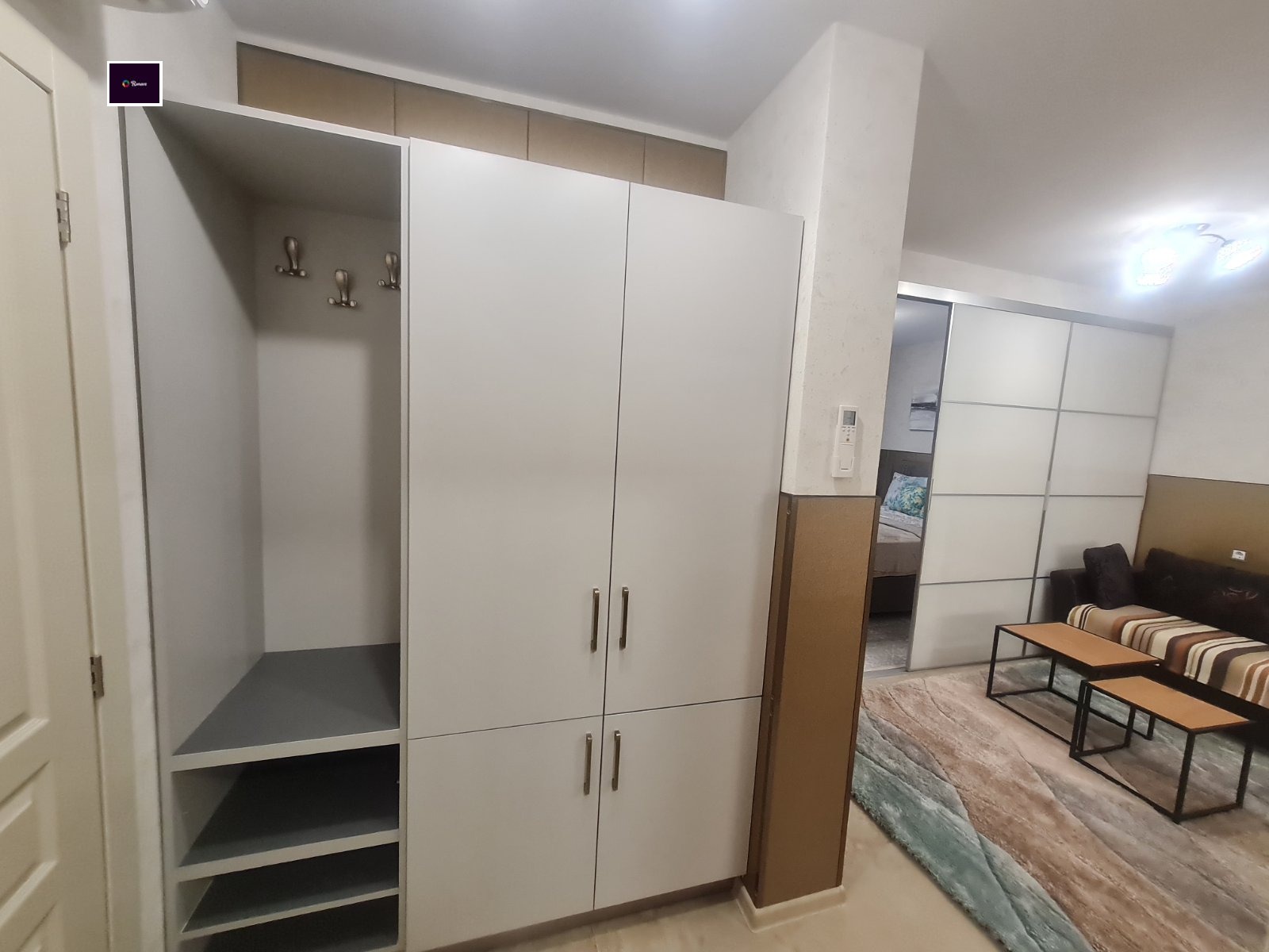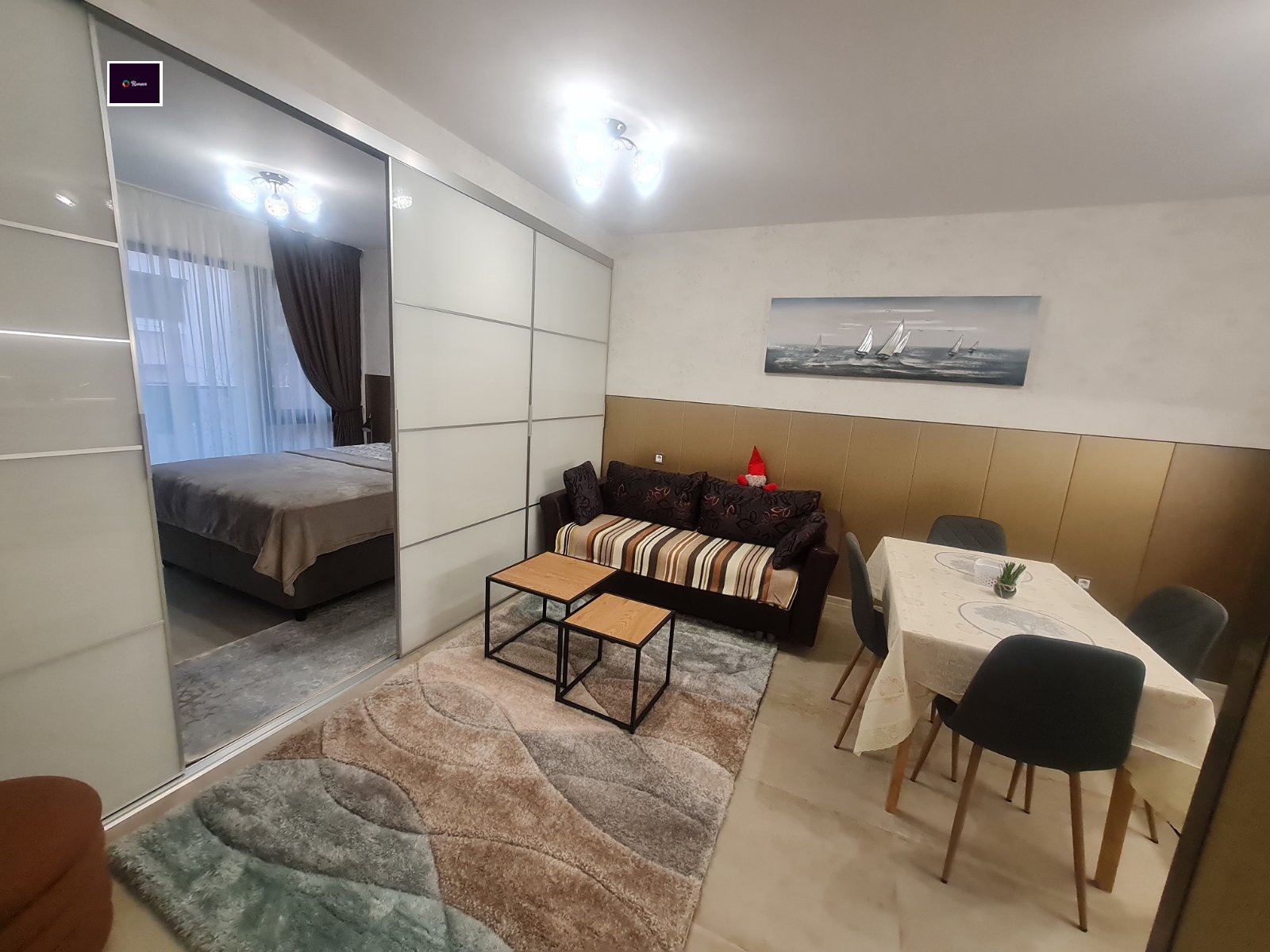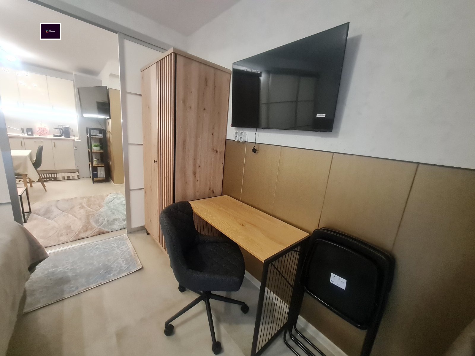 Състои се от: Входно антре, хол с кухненски бокс, родителска спалня, за почивка сред дълъг работен ден, обзаведена с голямо двойно легло. Баня с тоалет. Тераса.
