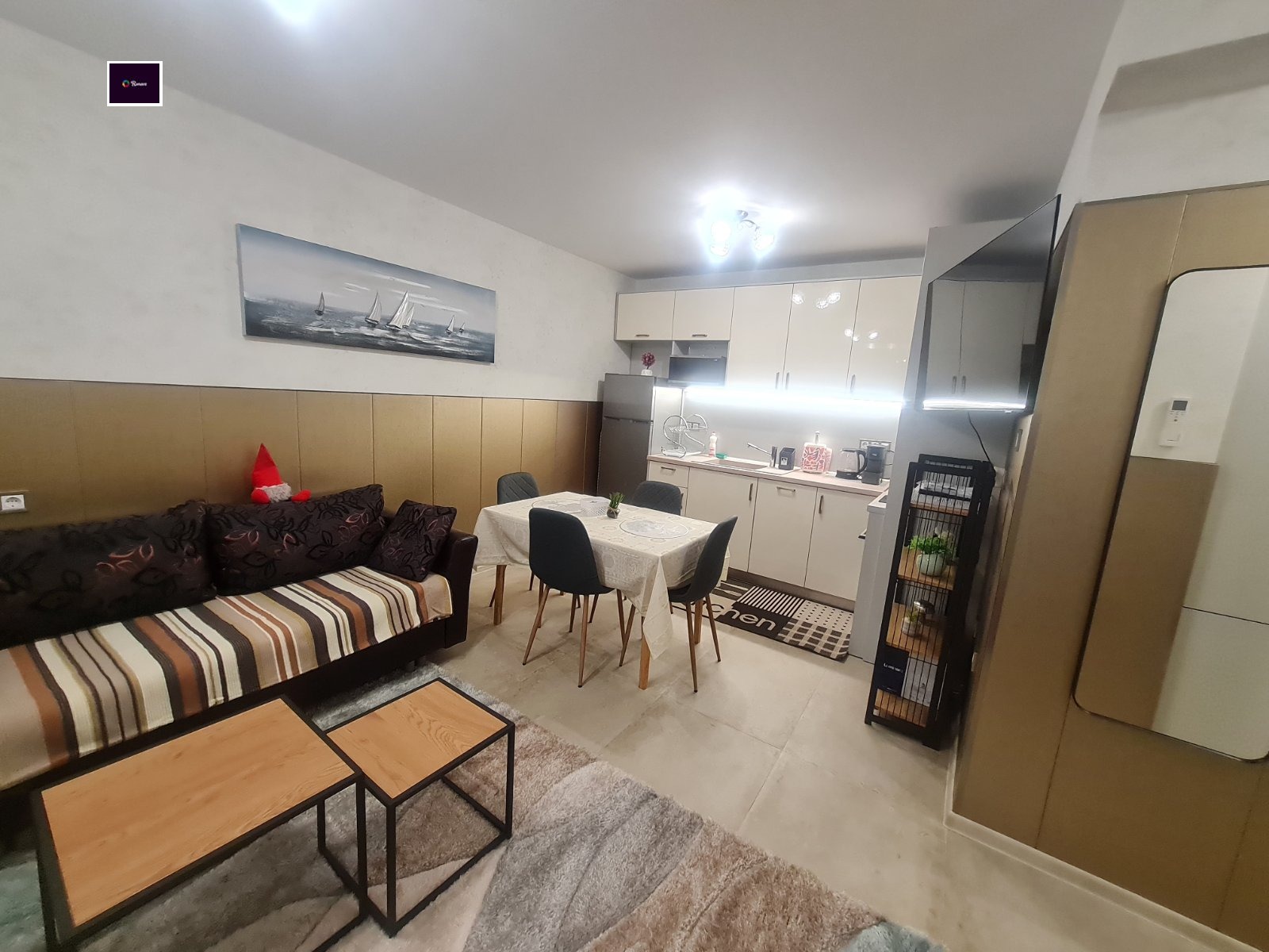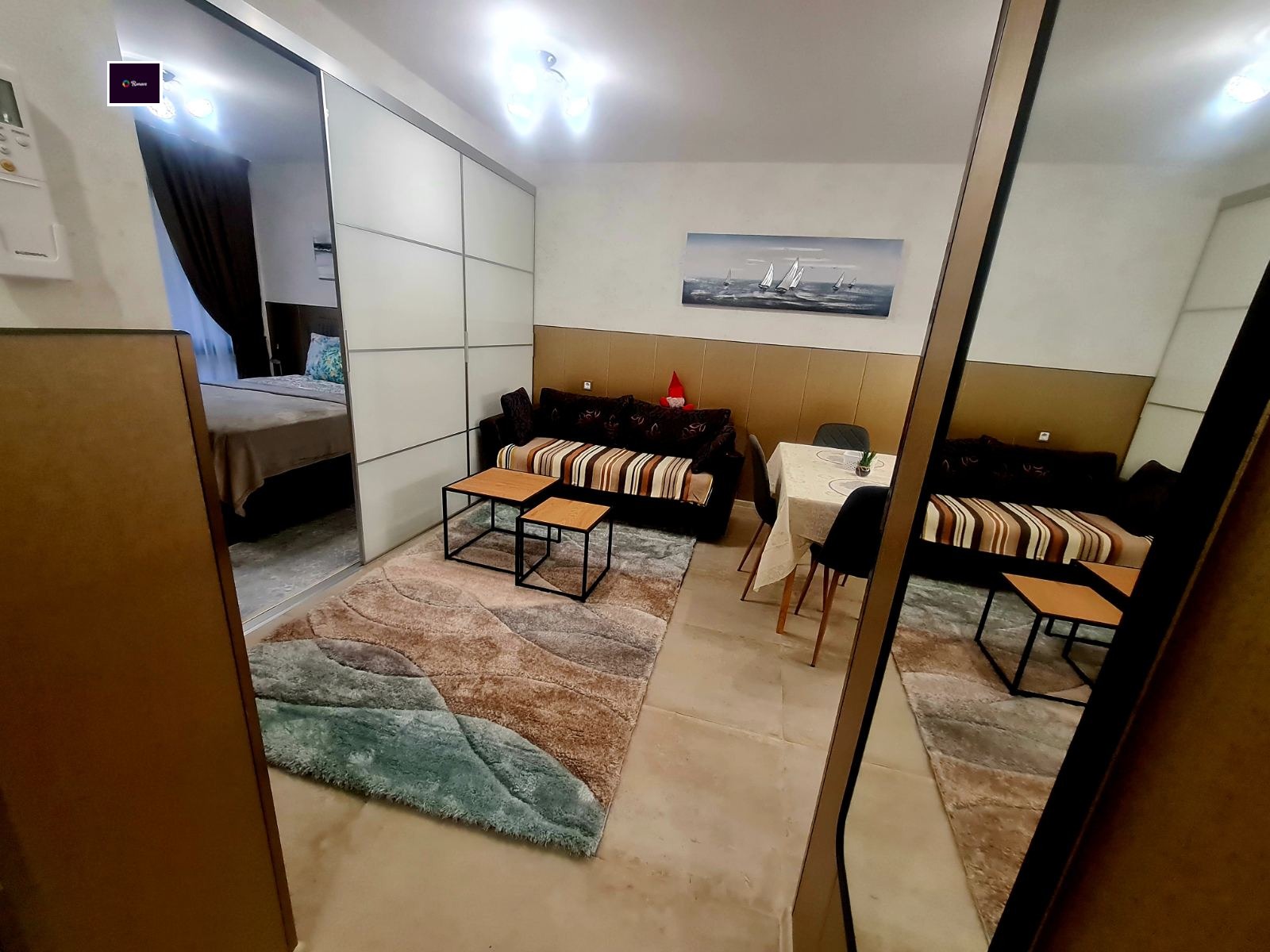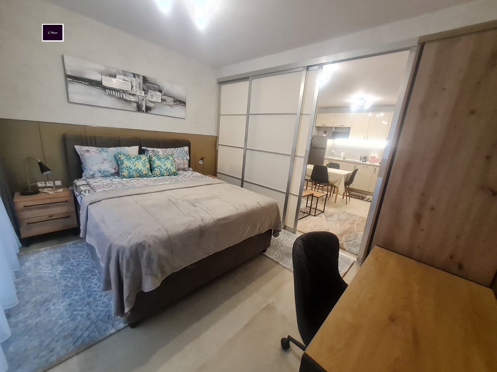 Състои се от: Входно антре, хол с кухненски бокс, родителска спалня, за почивка сред дълъг работен ден, обзаведена с голямо двойно легло. Баня с тоалет. Тераса.