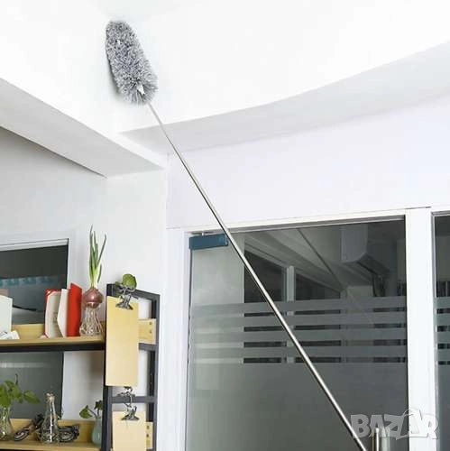 Телескопичната микрофибърна четка за прах 2 в 1 е идеалното решение за почистване на високи и труднодостъпни места – без нужда от стълба и без усилие.