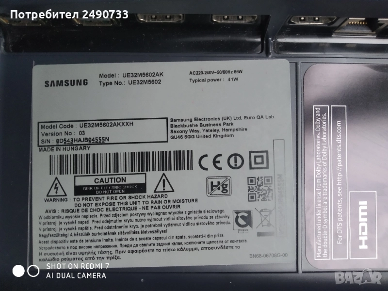 Телевизор Samsung ue32m5602ak на части → Обява 51939906