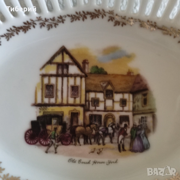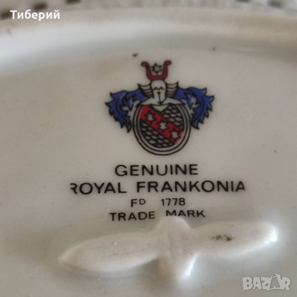 Винтидж ажурна порцеланова бонбониера " Genuine Royal Frankonia" - Старата къща- Германия, със златен венец и кант, като нова, без следи от употреба. Размери-20.5/13 см. По Еконт с 10% отстъпка.