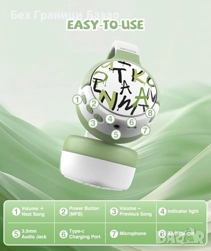 Нови Детски безжични шумопотискащи слушалки Bluetooth 60 часа батерия