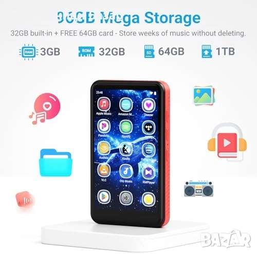 Нов MP3 MP4 Музикален плейър с тъчскрийн, Spotify, Bluetooth и WiFi 96GB