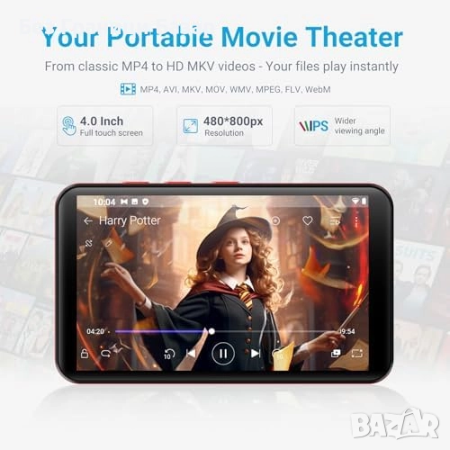 MP3 и MP4 плейър с Android 10 и 4" HD тъчскрийн за музика и видео навсякъде