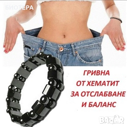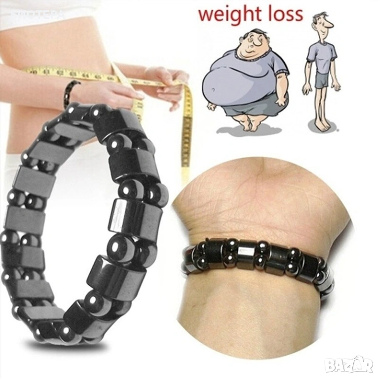 Еластична магнитна гривна за отслабване.Естествен камък хематит → Обява 51942201