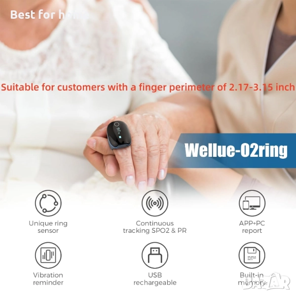 Wellue O2 пръстен -кислороден монитор с вибрационно напомняне - Bluetooth