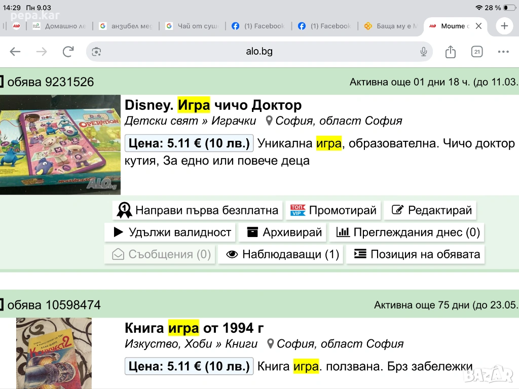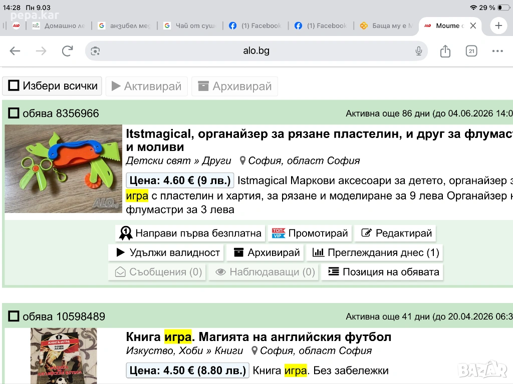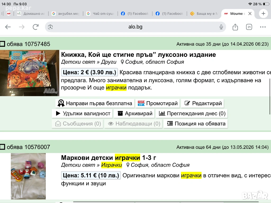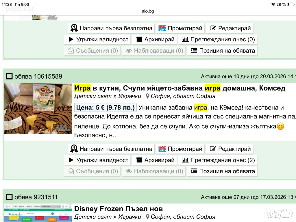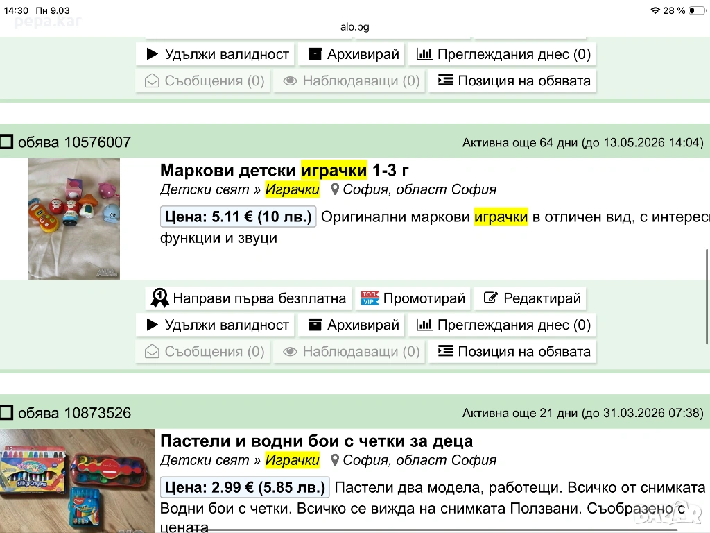 Влез в профила си или се регистрирай, за да не губиш наблюдаваните обяви, търсенията си и следваните потребители – ще ги имаш навсякъде с теб.