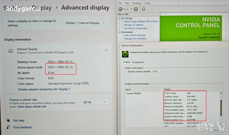 Видео карта : NVIDIA Quadro M600M 2GB GDDR5 128bit.