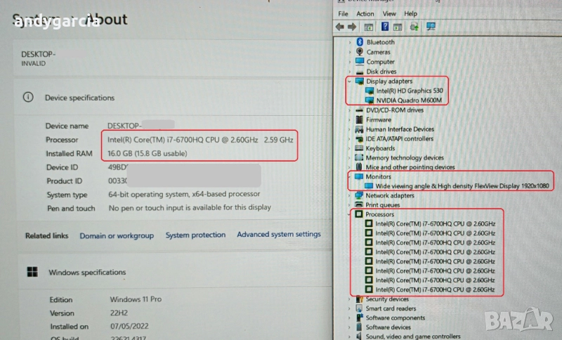 Продава се лаптоп, оригиналното зарядно устройство + инсталиран / лицензиран Windows 11 Pro.