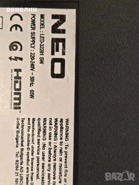 Частите са свалени от телевизор със счупена матрица NEO LED-32281