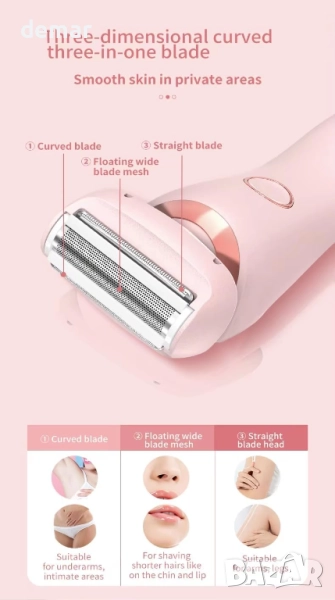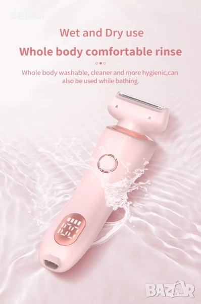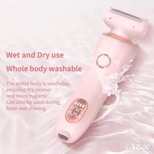 2 в 1 електрическа самобръсначка за жени и тример за бикини зона–водоустойчива, безболезнена, розова