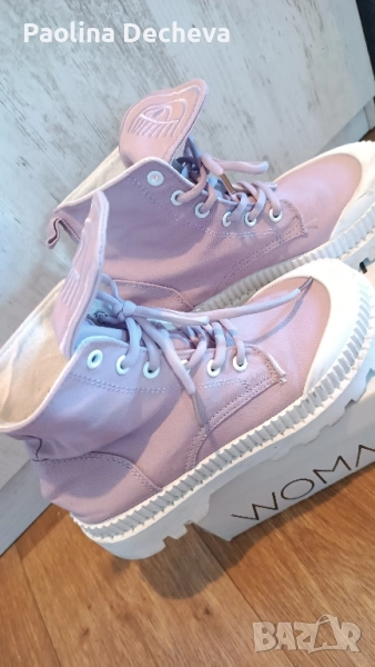 Авангардни боти без забележка с равна подметка. Носени за кратко в много нежен цвят.