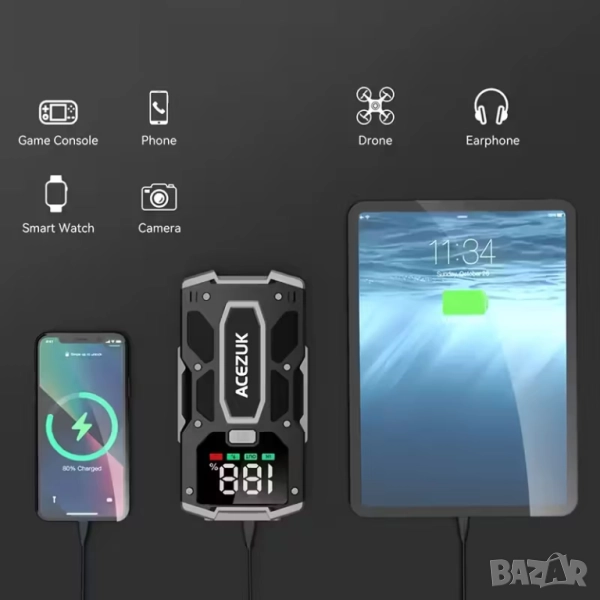 Jump Starter (бичѐ) - 12V/7000А бустер за подаване на ток и Power Bank