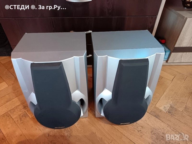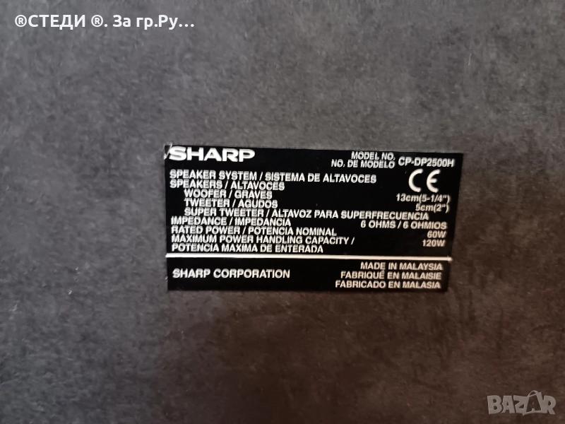 Тонколони SHARP: от уредба. Модел: CP-DP2500H Импеданс: 6 ома Номинална мощност: 60 W Максимална мощност: 120 W Произведено в Малайзия Тонколоните са само с една забележка, единия говорител като се усили малко ковече започва да пратка, но ако е усилено нормално си работи перфектно. Заради цената е такава. За гр Русе лично предаване за останалите населени места с еконт.