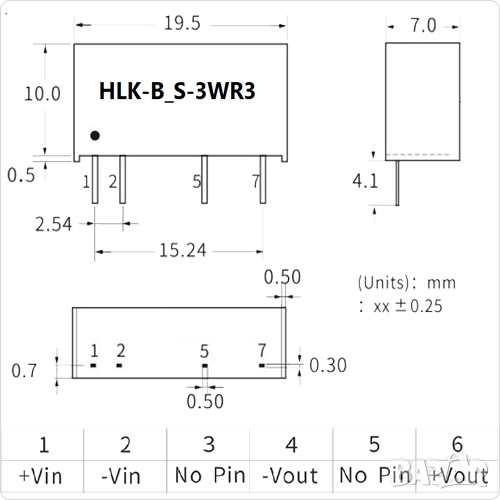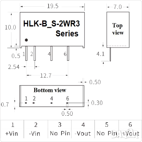 B0503S-1WR3 - 2.70 лв /1500VDC,Input 5V,Output 3.3V,Output Current 303mA max/30mA min,1 W/
