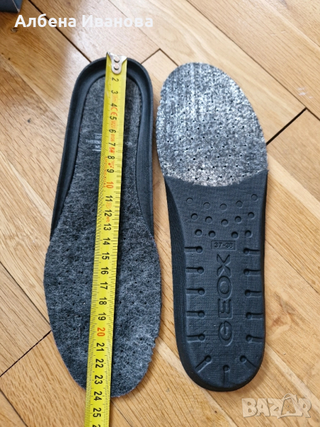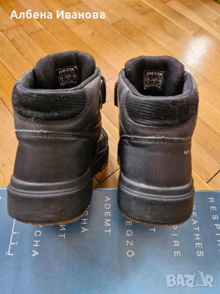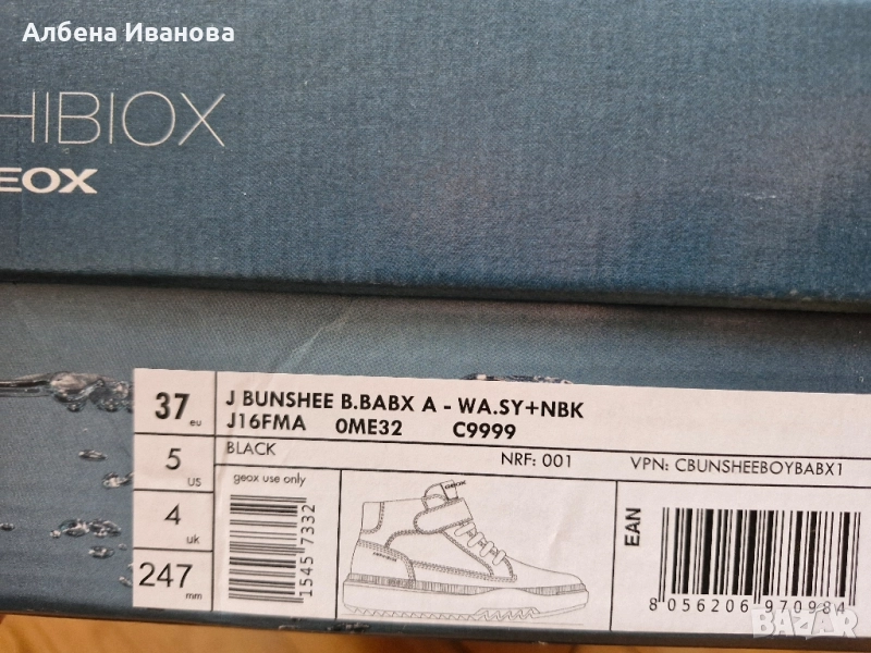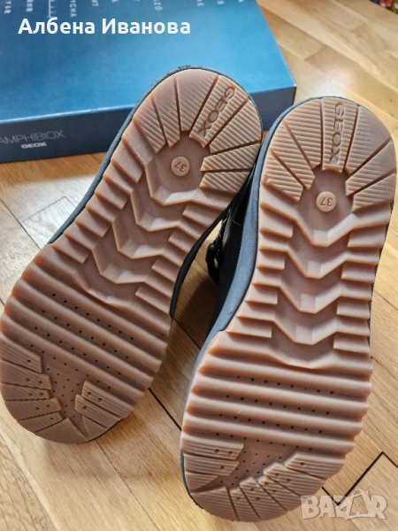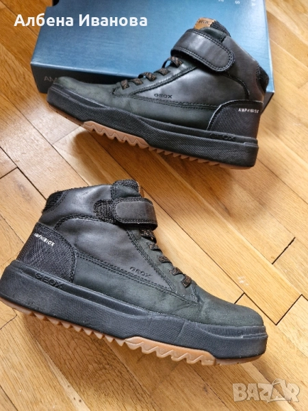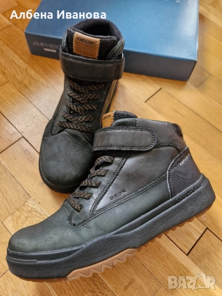 Продавам използвани детски боти Geox Amphibiox номер 37. Стелката от край до край е 24 см, т.е за стъпало около 23 см. Обувките са ползвани сравнително малко, защото за всеки сезон детето има поне 3 чифта от номер, които сменя, затова са в много добро състояние. Ботите са от серията Amphibiox, т.е. непропускат вода, дебело подплатени са, а вълнените стелки са с допълнителна термоизолация при пръстите. Много топли и идеални за предстоящата зима. Цветът е черно с кафяво на подметките. Лесно и бързо се обуват и събуват, защото са с ластични връзки и стабилна велкро лепка.