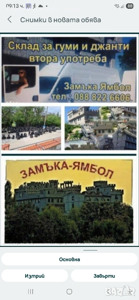 информация и снимки Склад за Гуми и джанти Замъка Ямбол Лице за контакт Петя Тончева 0888226606