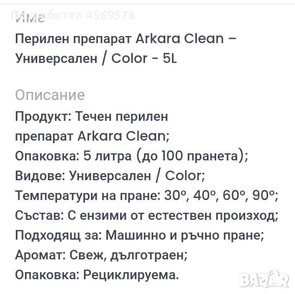 🌟Перилен препарат Arcara Clean - универсален / сolor, 5л. → Обява 51945391