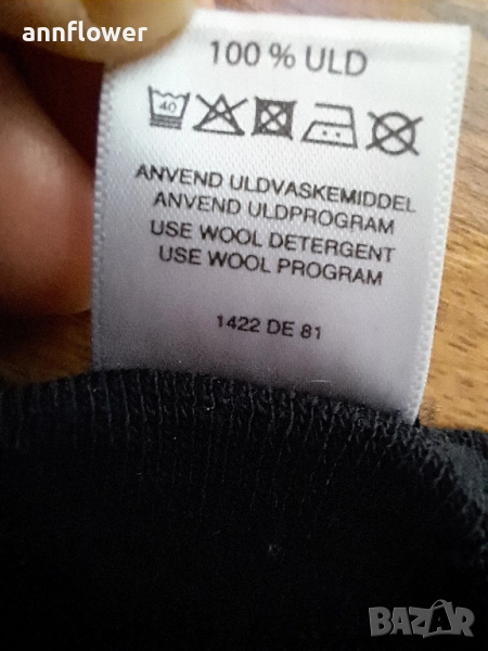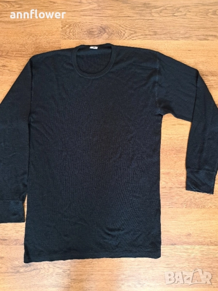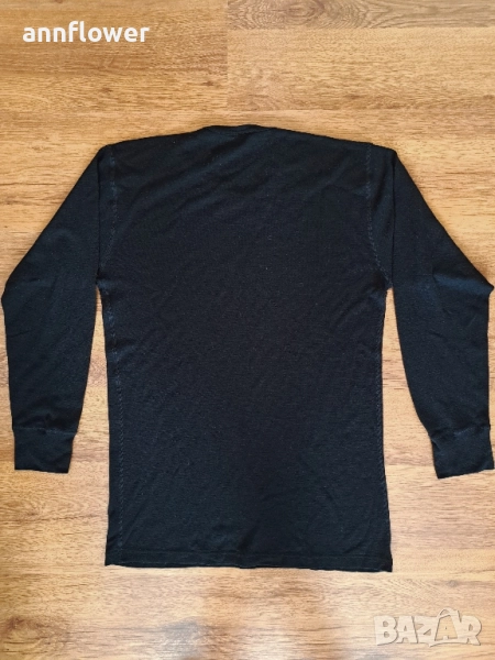 Блузата е нова но няма етикет защото е изпрана. Материя вълна. Цвят черен. Размер L дължина 75см ширина в мишниците едностранно измерена без да разстягам 55см дължина на ръкава от подмишницата 53см.