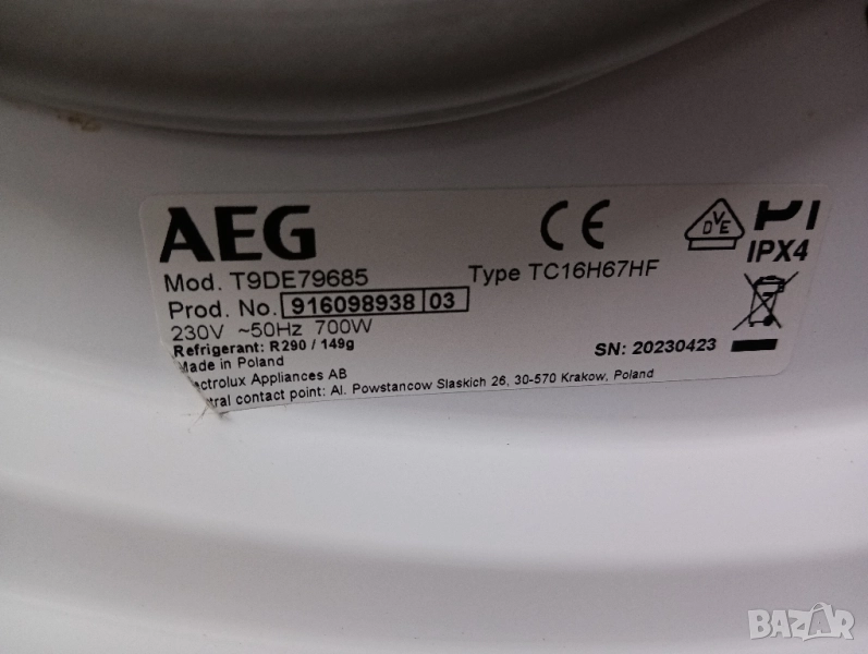 Сушилня с термопомпа АЕГ Aeg Series 9000 A+++ 8кг 2 години гаранция! → Обява 51945583
