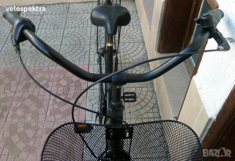 СЕДЕМ скорости Шимано Нексус-Япония с контра и предна спирачка. Калници, степенка, предпазител на веригата, багажник, кошничка! Широка седалка ГЕЛ.