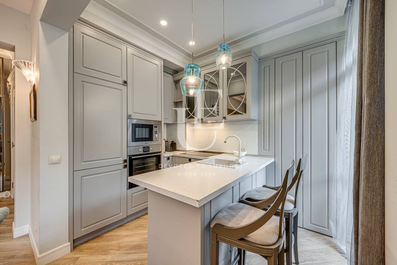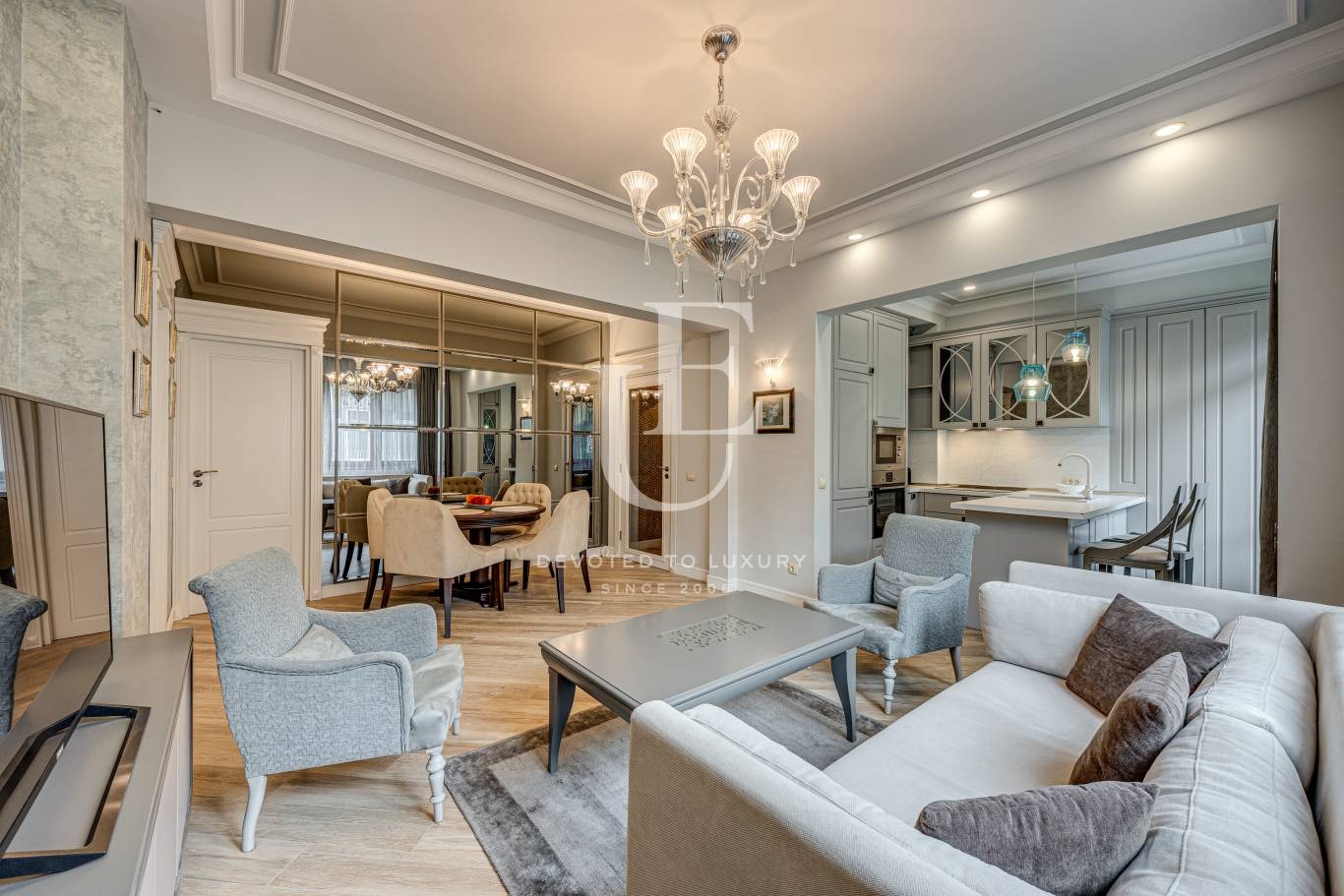 Unique Estates предлага под наем ексклузивно стилно обзаведен тристаен апартамент в добре поддържана сграда на тиха улица в непосредствена близост до градината на Докторски паметник.