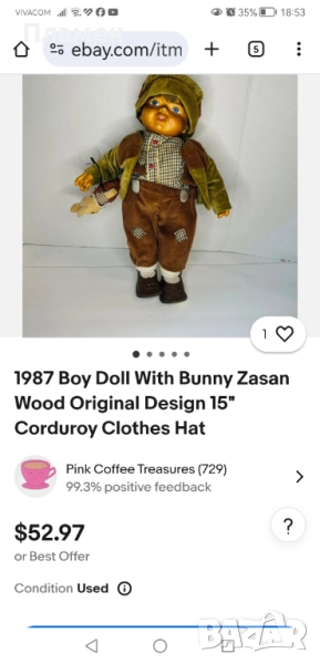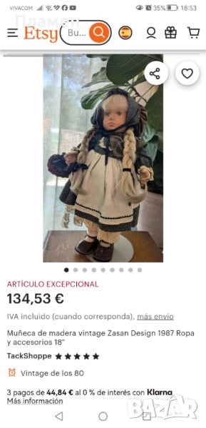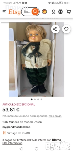 Колекционерска кукла 1987 ZASAN WOOD HABENE SWITZERLAND → Обява 51946197