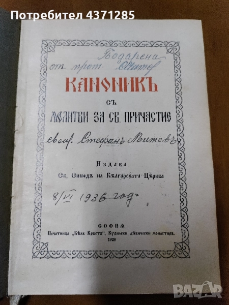 православен КАНОНИК, богослужебна книга с молитви за Светото Причастие - изд.1928 г църква → Обява 51946429