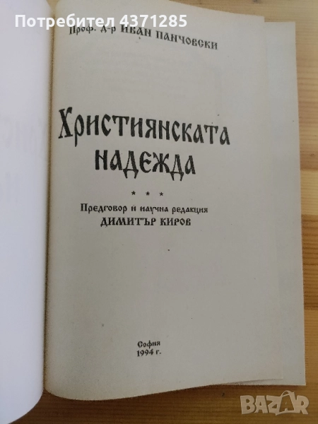 Християнската надежда-проф д-р Иван Панчовски → Обява 51946515