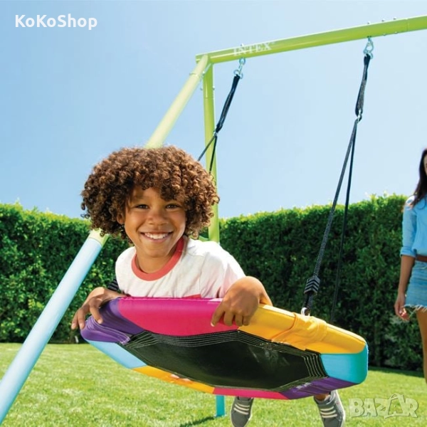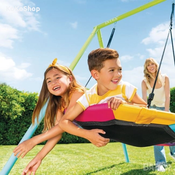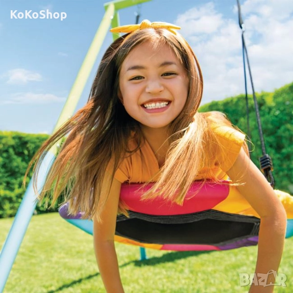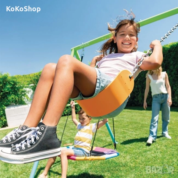 Двойна,детска градинска люлка,с издръжлива,но същевременно лека метална конструкция. Конструкцията е от поцинковани тръби с диаметър 6 см., които са устойчиви на ръжда и атмосферни условия.