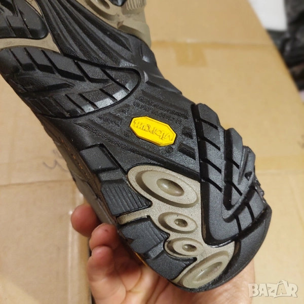 Обувки за разходки на марка Merrell. Горна част е с подсилена устойчивост естествена кожа - велур, текстил - текстил, изкуствен материал - висококачествен материал. Стелката е материал. Подметка подходяща за мокри и хлъзгави повърхности: висококачествен материал. В обувките е използвана технология EVA, GORE-TEX® Extended Comfort Footwear, Merrell Select FIT.ECO, Vibram. Това са сигурни обувки за тренировка.