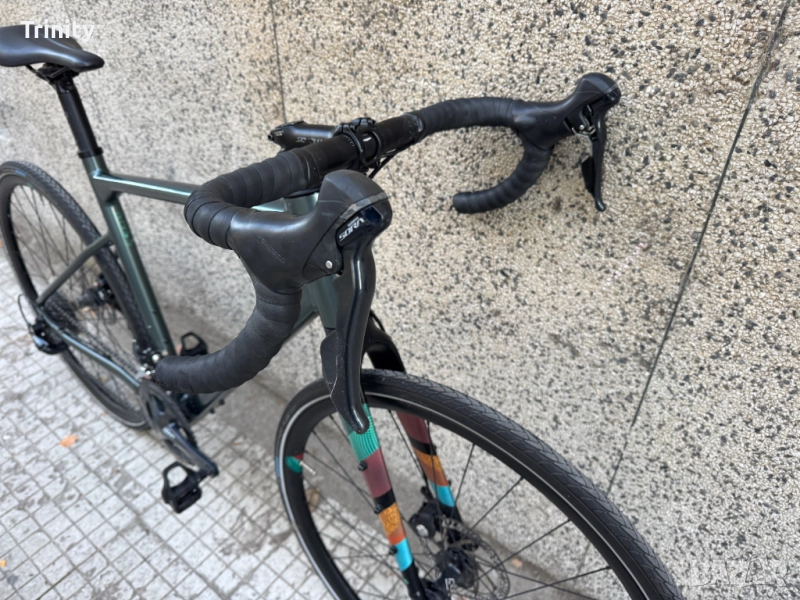 Един страхотен гравел велосипед Bergamont Gran Durance 4 с монтаж шимано Сора 2х9 скорости. Размер Л (L) 55cm. Отлично техничестко състояние. модел 2024 година. механични дискови спирачки. алуминиева рамка и вънпшни лагери. 28 цола.