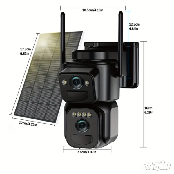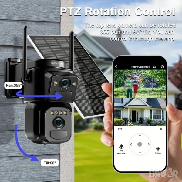 * Устойчив на атмосферни влияния високоефективен соларен панел за непрекъснато захранване на камерата дори и в облачни дни.