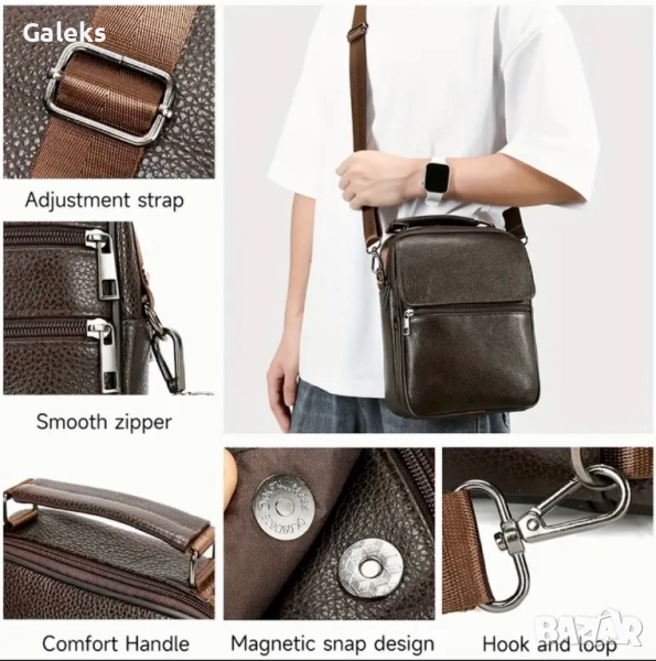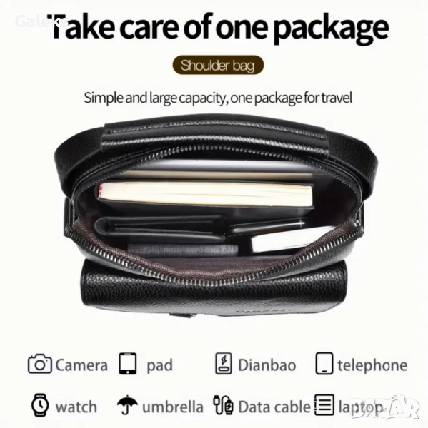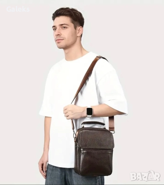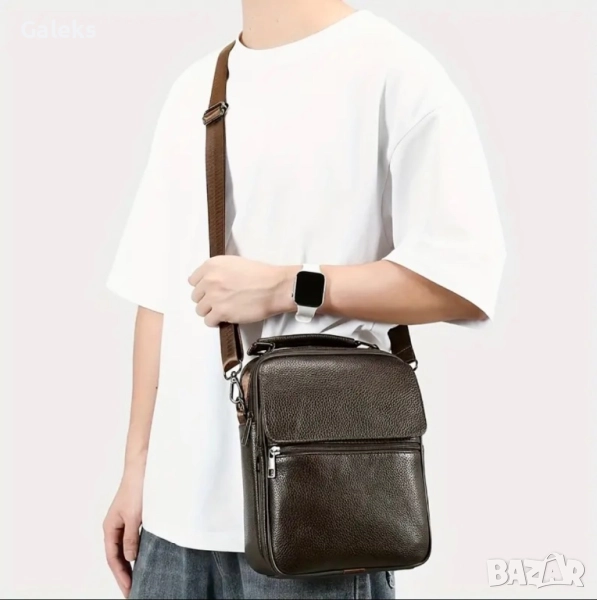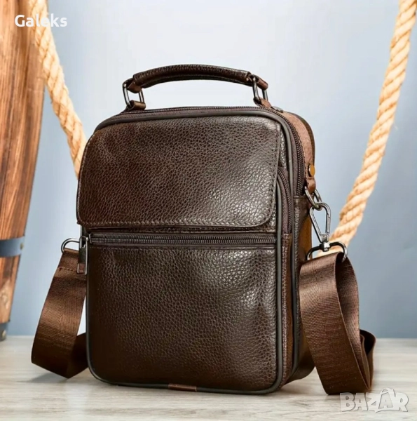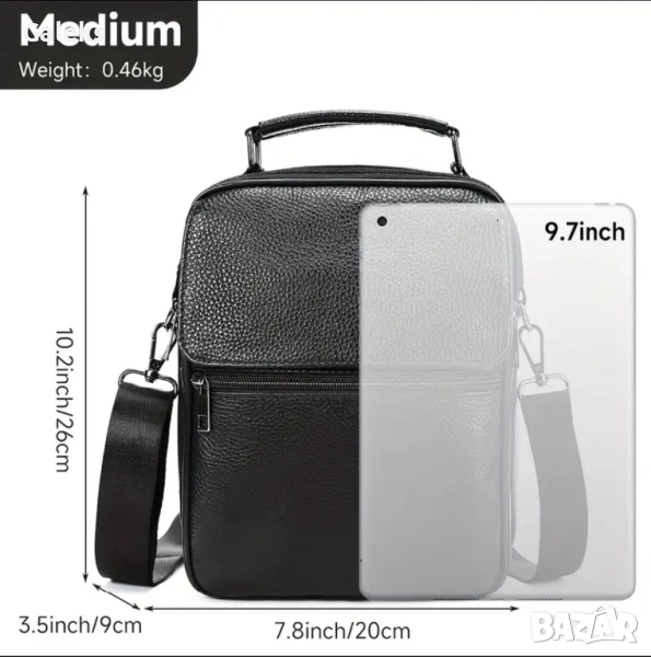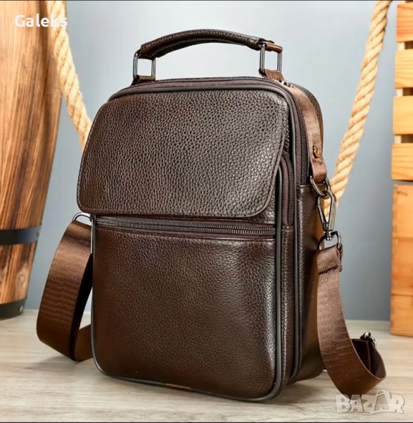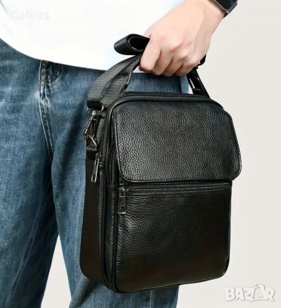 Модерна, елегантна, практична и делова мъжка месинджър кожена чанта от естествена кожа в черен цвят.