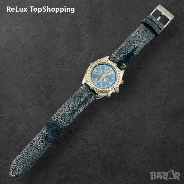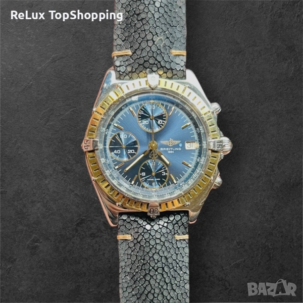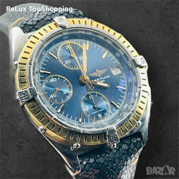 Предлагам луксозен Breitling Chronomat с базел от масивно 18-каратово злато (не позлатен), диаметър 39 мм. Това е един от най-емблематичните модели на марката от края на 80-те и 90-те години – периодът, когато Chronomat се утвърждава като флагман на Breitling, след представянето му на Baselworld през 1984 г.