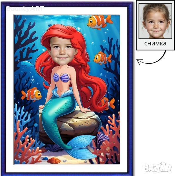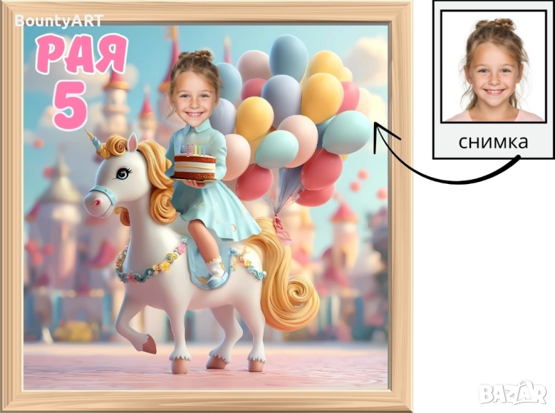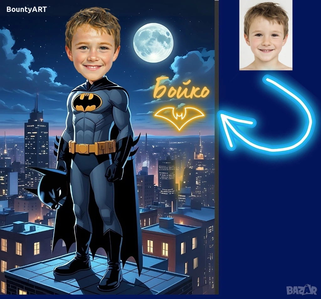 Детски карикатури по снимка, които превръщат вашето дете в любим герой – принцеса, супергерой, анимационен образ или тема по ваше желание.