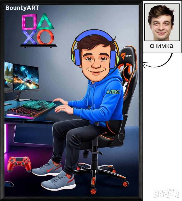 – Персонален дизайн с избор на герой, цветове, фон и надпис