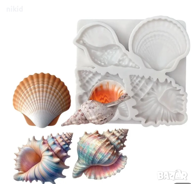 4 вида рапан рапани мида морски силиконов молд форма фондан шоколад гипс декор → Обява 51947310