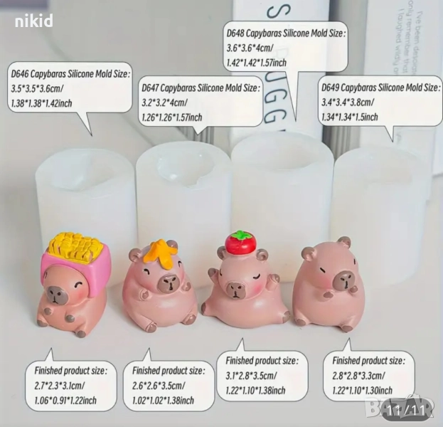 4 бр 3D Капибара Capybara силиконов молд форма калъп гипс кубчета гипсови фигурки с имена свещ смола → Обява 51947323