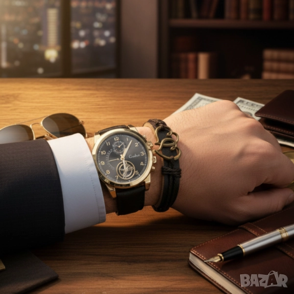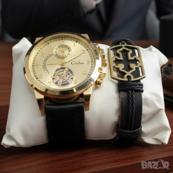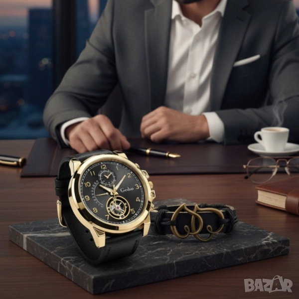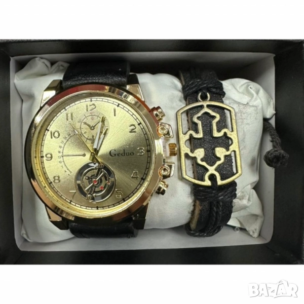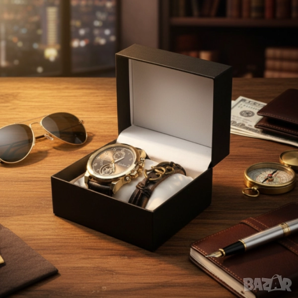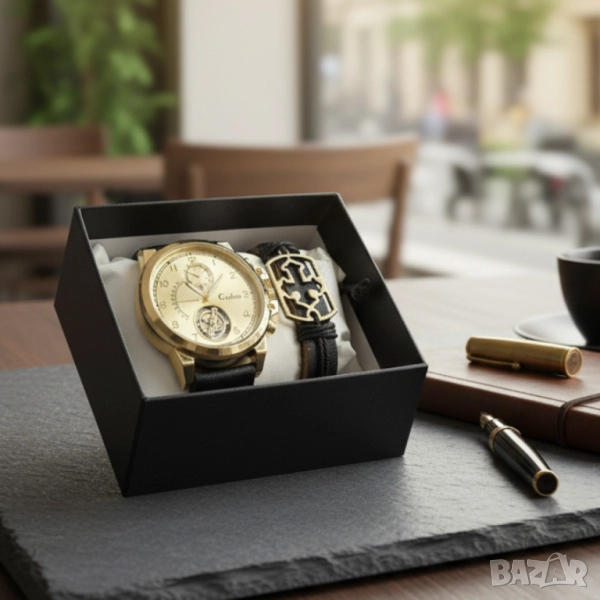 Тип продукт: Мъжки комплект – аналогов ръчен часовник + гривна;