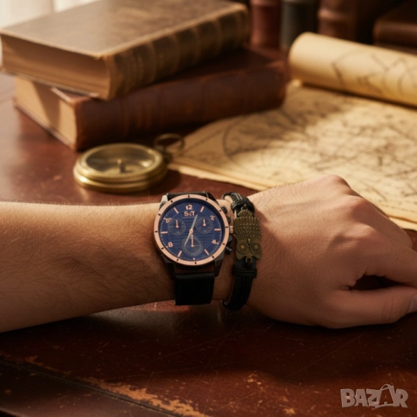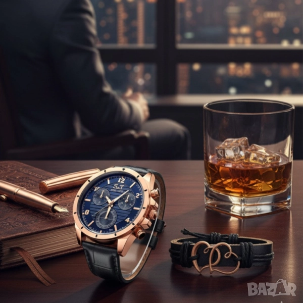 Мъжки часовник S&T Seek Time с кожена гривна – подаръчен комплект