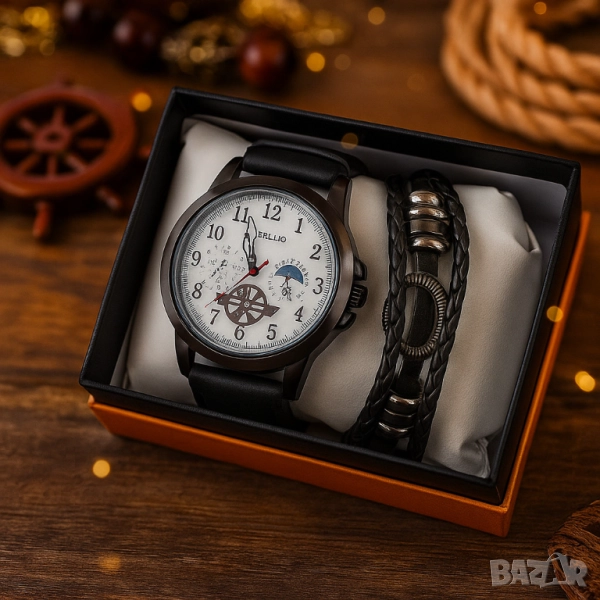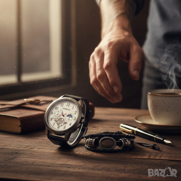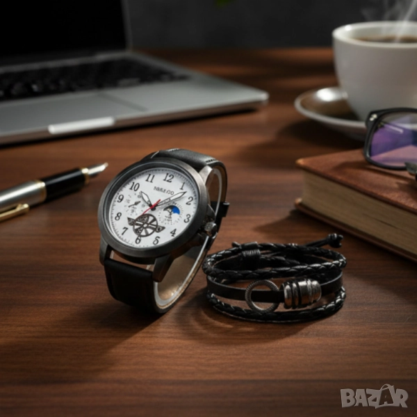 Мъжки часовник с големи цифри и подаръчна гривна – стил и практичност в готов комплект